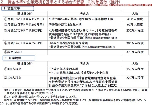 適用条件を「週20時間以上」に緩和することを柱とした厚生労働省の方針を